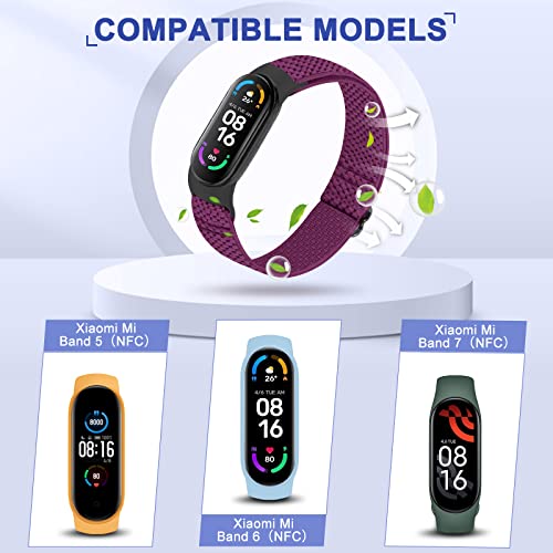 Enkic Cinturino elastico regolabile compatibile con Xiaomi Mi Band 7/Mi Band 6/Mi Band 5, cinturino sportivo di ricambio in nylon elastico per donne e uomini