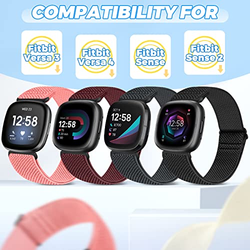 Enkic Confezione da 2 cinturini elastici compatibili con Fitbit Versa 4/Fitbit Versa 3/Fitbit Sense 2/Fitbit Sense, cinturino in nylon regolabile, cinturino elastico di ricambio per uomini e donne
