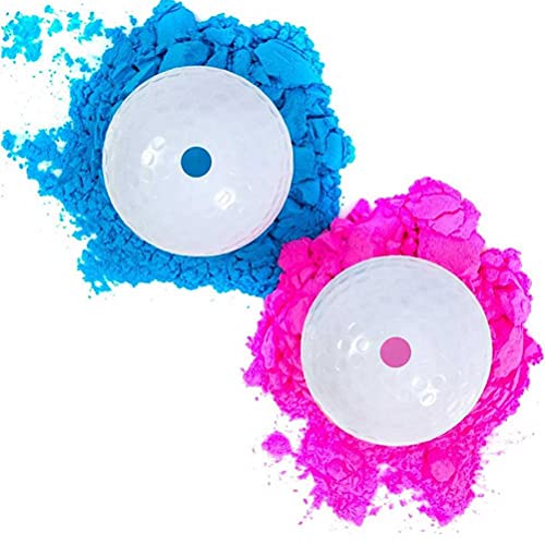 Enkomy Pallina da Golf Gender Reveal,Palline da Golf Esplosive,tra Cui 1 Rosa + 1 Blu + 2 T-Shirt in Legno L'idea Perfetta per Rivelare Il Genere! per Le Feste di Tutta La Famiglia