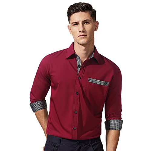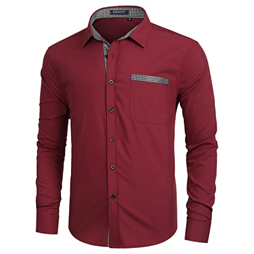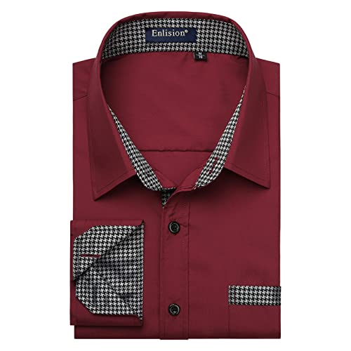 Enlision Camicia Bordeaux Uomo Elegante Manica Lunga Regular Fit Camicia Matrimonio Casual Camicie Classiche da Cerimonia Business con Tasca S
