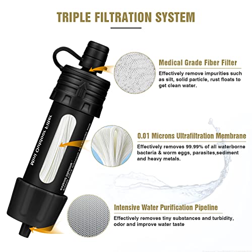 ENONEO 5000L Filtro Acqua Personali Mini Portatile Purificatore Acqua Filtri Filtro per L'acqua All'aperto Esterna Cannuccia di Emergenza,Rimuove il 99,99% dei Batteri per Emergenze e Camping