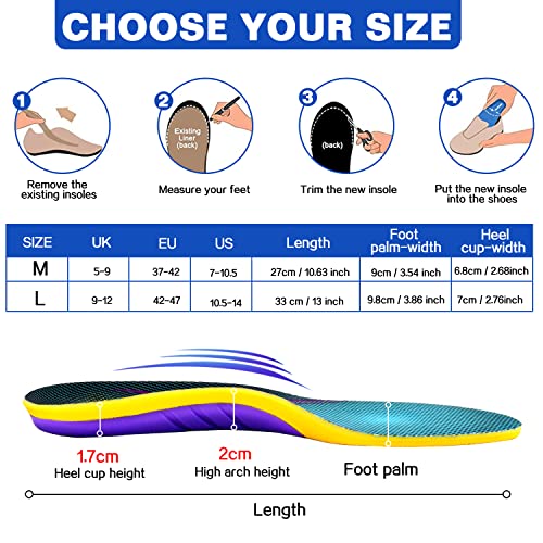 【Sollievo dal Dolore】La solette per fascite plantare è dotata di cuscinetti metatarsali GEL ammortizzanti su suole e talloni per fornire il massimo supporto del piede e alleviare efficacemente il dolore e l'affaticamento del tallone. Le solette scarpe per piedi piatti sono progettate per persone con metatarsalgia, fascite plantare, tendinite d'Achille, dolore allo stinco. Le plantare ortopedico alleviano anche la pressione e il dolore da piedi piatti, piedi arcuati, borsiti, artrite e diabete.