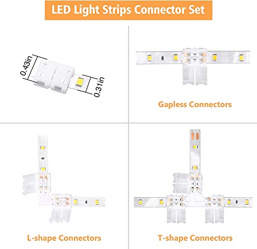 ENQIMAOYI Kit di connettori per strisce LED a 2 pin, 10 mm, con connettori senza fessure, forma L/T, senza saldatura, per interni, 3528/2835, strisce monocolore (10 mm, 2 pin)