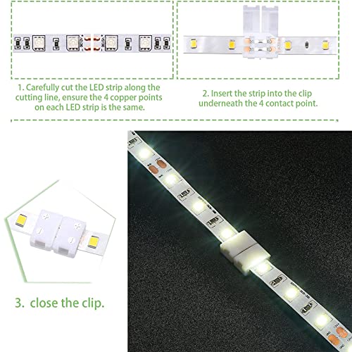 APPLICAZIONE: Kit di connettori rapidi 2pin 10mm LED adatto a luci di striscia LED SMD 5050 RGB larghe 10mm, che collegano strisce LED non impermeabili e impermeabili, ma è necessario staccare il rivestimento delle strisce LED impermeabili.