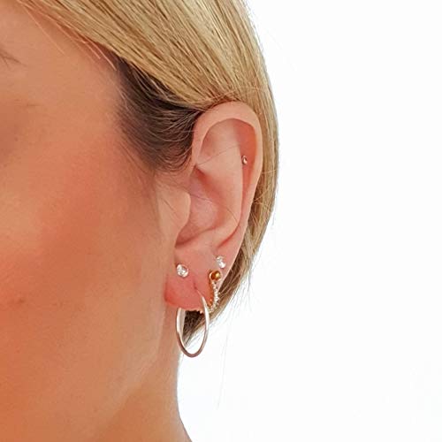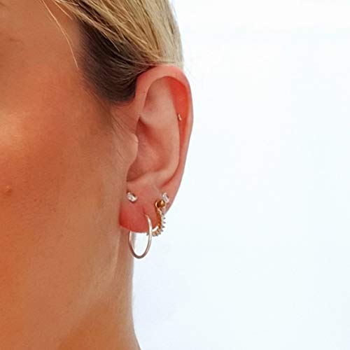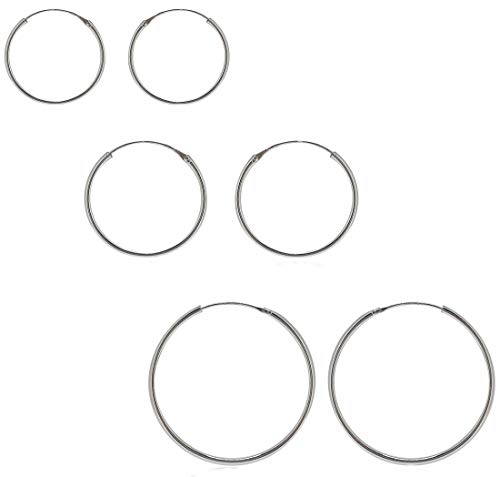ENTREPLATA Set di tre paia di orecchini a cerchio in argento Sterling 925 da 12, 14 e 16 mm.