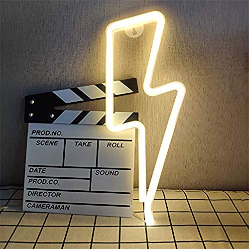 ENUOLI Lightning Neon Light Applique da parete al neon USB/alimentato a batteria LED Neon Signs Lightning Shaped Neon Signs Light for Home Party Wedding Party Decor (bianco caldo)