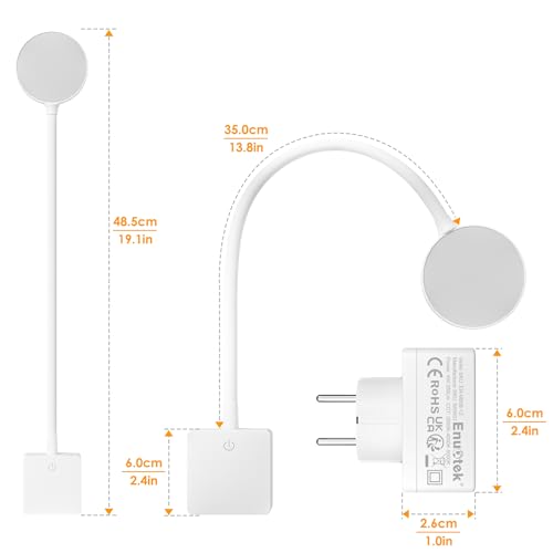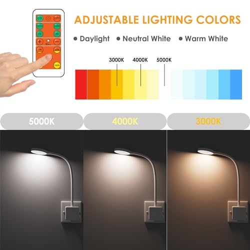 ENUOTEK Luce Notturna a Muro da Parete a LED, Dimmerabile Bianca Lampada da Lettura Parete a LED con Spina e Telecomando Senza Fili 4W 280Lm Luce 3000K-4000K-5000K regolabile Lettura Parete a LED
