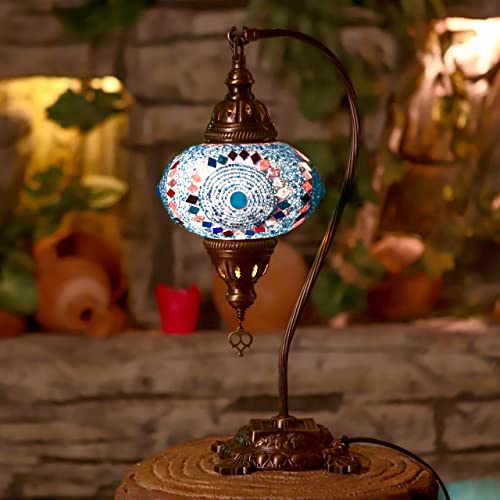 ENVA Lampada da tavolo a mosaico turco, splendido stile marocchino, paralume a globo unico, serie collo di cigno (turchese)