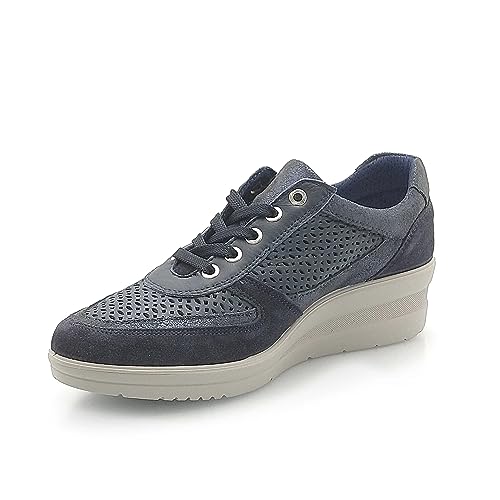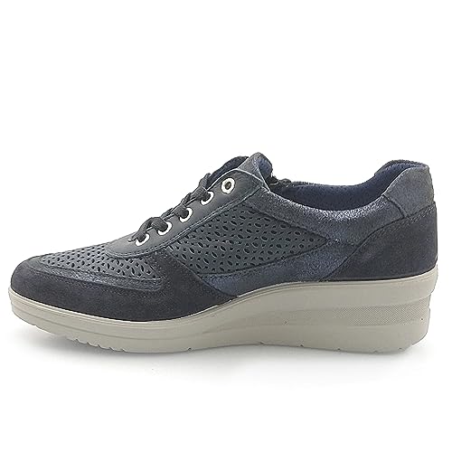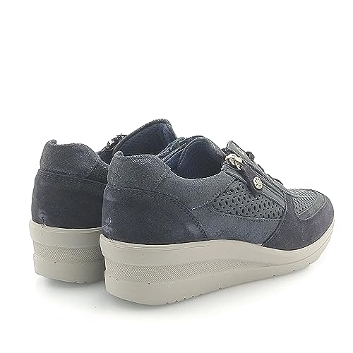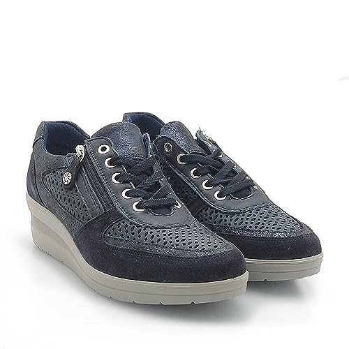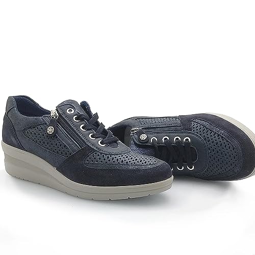 Enval Soft 12660 Notte Scarpa Donna Sneaker Zeppa 5 con Zip Pelle Made in Italy 41