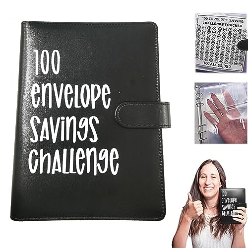 100 Envelopes Saving Challenge, 100 Envelope Challenge Binder, Cash Binder Savings Challenge Budget Book Binder With Envelope For Budget Planners And Money Savers(Nero)