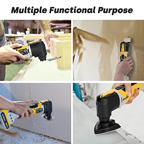 ENVENTOR Utensile Multifunzione Oscillante a batteria da 20V, Utensils Rotante Kit, 19500 ORB/MIN, 6 Velocità Regolabili, 4° Angolo di Oscillazione, 28 accessori,Per Raschiatura,Taglio,Lucidatura