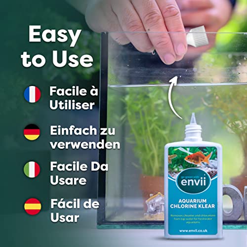 Envii Aquarium Chlorine Klear - Elimina Cloro Acquario - Rende Sicura l'acqua del Rubinetto - Tratta 2.500 Litri