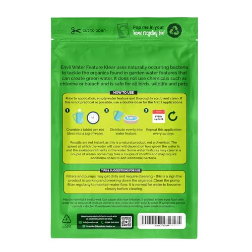 Envii Water Feature Klear - Trattamento Dell'acqua Verde Naturale per Giochi d'acqua e Pulizia Fontana acqua, Funziona a Basse Temperature