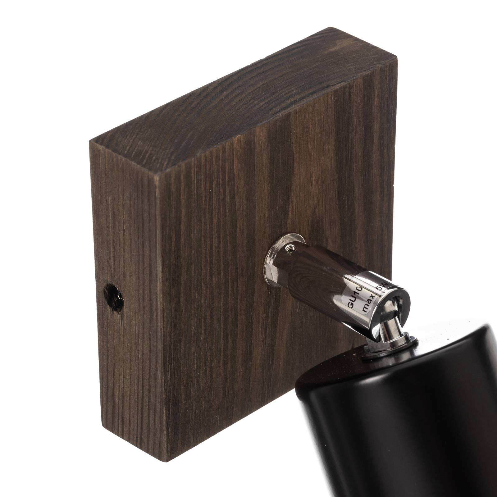 Sostenibile in tutto e per tutto - Spot da parete Alara in legno di pino In un soggiorno moderno, questo spot a parete non solo offre un'ottima illuminazione, ma anche un tocco decorativo, perché la combinazione di legno di pino e metallo nero attira l'attenzione. L'apparecchio angolare in legno è stato tinto nel colore noce per ottenere un effetto estremamente naturale. Utilizzando una lampadina a LED (vedi accessori), lo spot può anche funzionare in modo efficiente. Il paralume in metallo nero è montato su uno snodo cromato in modo da poter essere allineato a piacere per illuminare un'area specifica. L'utilizzo di materiali di alta qualità e sostenibili sono solo alcuni degli aspetti del marchio Envostar, che sta dietro al wall spot Alara. Tutti gli apparecchi Envostar sono "Made in Europe", il che significa percorsi di consegna brevi e minori emissioni di CO2. Il tema del "packaging sostenibile senza plastica" e delle "condizioni di lavoro socialmente giuste" sono anche importanti principi guida del marchio Envostar.