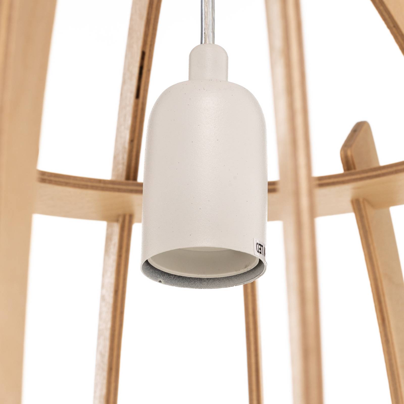 Lampada a sospensione Lohr semicircolare in legno certificato FSC La lampada a sospensione Lohr in legno, che cattura immediatamente l'attenzione con il suo design insolito, è un'aggiunta esteticamente piacevole a qualsiasi spazio abitativo. Grazie agli elementi in legno sul lato della lampada, che le conferiscono una forma semicircolare, la luce non viene solo irradiata direttamente verso il basso, ma anche diffusa in tutta la stanza per creare un'immagine luminosa suggestiva. Il marchio Envostar fa produrre le sue lampade in Europa, garantendo così le vie di trasporto più brevi possibili e basse emissioni di CO2. Il legno utilizzato per Lohr proviene da regioni gestite in modo sostenibile ed è certificato FSC. Per l'imballaggio sono stati evitati materiali monouso come la plastica o il polistirolo.