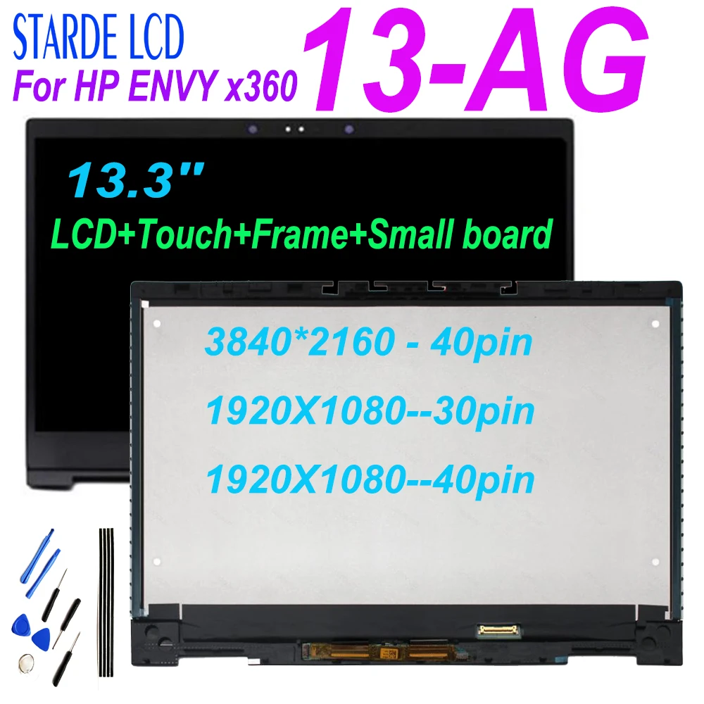 For HP ENVY x360 13-AG Series LP133WF4 SPA4 M133NVF3 R0 IPS 1080P LCD Touch Screen Glass Panel Assembly + Bezel+Board 2hole
