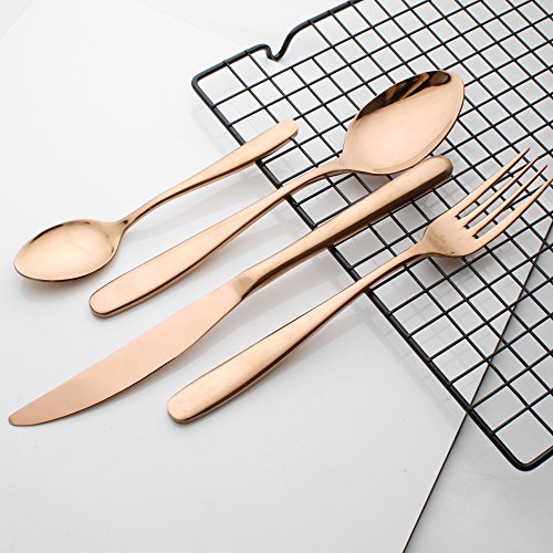 Enwinner pezzi Set di posate Posate in acciaio INOX, colore: viola Premium Eletroplating argenteria Rose Gold-4
