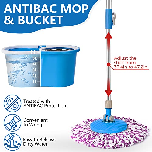 Enyaa, secchio per mocio "strizza e asciuga" con mocio facile da usare con rotazione a 360, 4 teste di ricambio per mocio e spazzola ruvida in nylon incluse, in 4 colori Blue