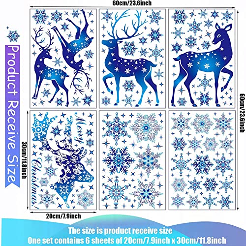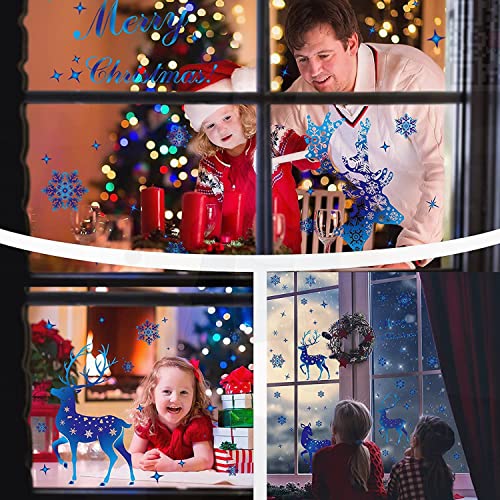 ENYACOS Adesivi Natalizi per Finestre, Renna blu, Vetrofanie Natalizie, Vetrofanie Natale Rimovibile Statici in PVC, DIY Adesivi Natalizi Finestre