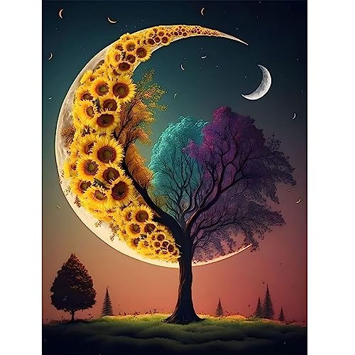 EOBROMD 5D Diamond Painting Kit Completo, Luna Pittura Diamante FAI DA TE, Fiori Diamond Painting Bambini Adulti, Strass Ricamo a Punto Croce Painting Decorazione per Casa 30x40cm