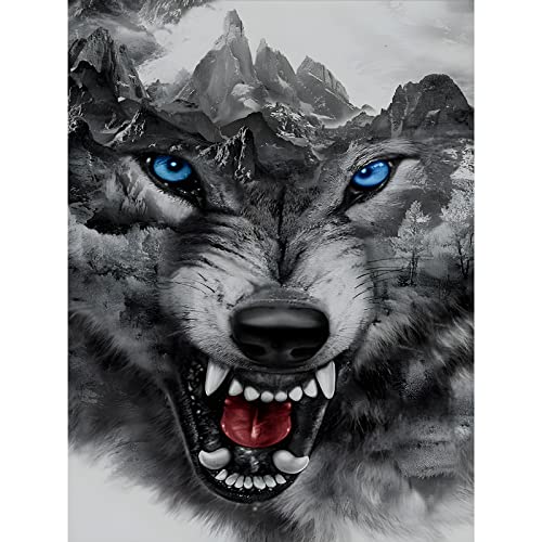 EOBROMD 5D Diamond Painting Kit Completo, Lupo Pittura Diamante FAI DA TE, Diamond Painting Bambini Adulti, Strass Ricamo a Punto Croce Painting Decorazione per Casa 30x40cm