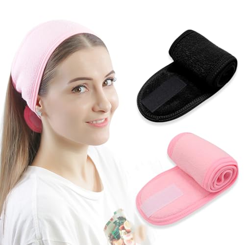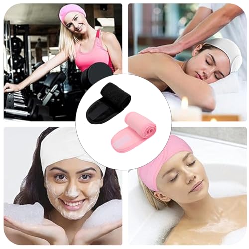 EODKSE Fascia per Capelli in Microfibra Regolabile con Magic Tape - Set da 2 Pezzi - Ideale per Skincare, Trucco, Doccia, Sport e Yoga - Disponibili in Nero e Rosa,