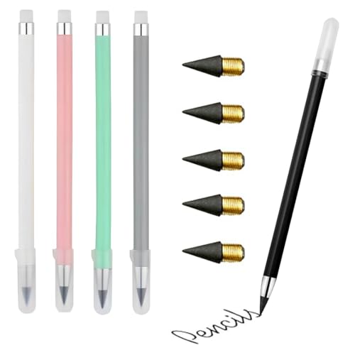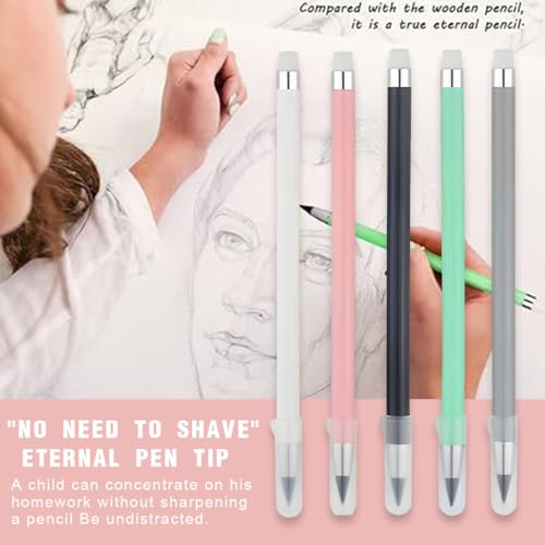 EODKSE Set di 5 Matite Senza Inchiostro con Portamine Eterno e 5 Punte di Ricambio, per Scrivere all'Infinito, Ideale per Casa, Ufficio e Anche per i Bambini,