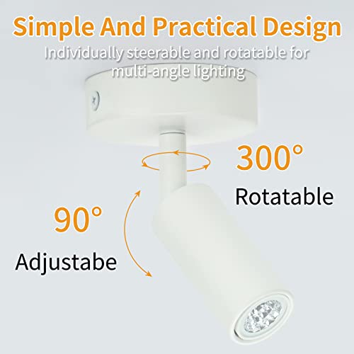 【Multifunzionale】L'apparecchio può essere ruotato di 300° e regolato di 90° verso l'alto e verso il basso. Dimensioni compatte, può essere montato sia a soffitto che a parete. Può essere utilizzata come plafoniera, applique, luce da lettura, lampada da comodino, ecc.