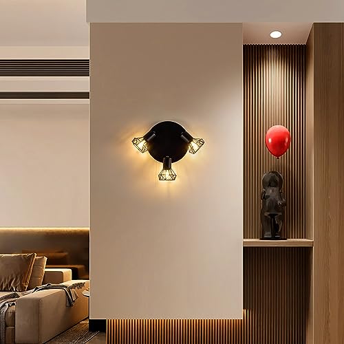 Eofiti Faretti LED da Soffitto Orientabili Nero Lampada da Soffitto 3 Faretti E14 Faretti da Interno Retrò Plafoniera LED Faretti Metallo per Camera da Letto Soggiorno Lampadina Non Incluse Max. 28W