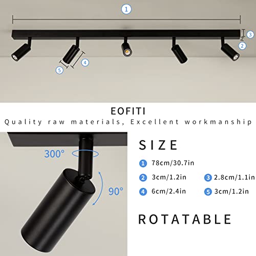 【Suggerimenti】Faretto da soffitto a 5 luci dimensioni del corpo 78*3*2.8 cm/30.7*1.2*1.1 in, dimensioni del paralume Ø3*6 cm/Ø1.2*2.4 in. Adatto come illuminazione secondaria. Se desiderate altre lampadine LED G9 abbinate, visitate lo Store di Eofiti.