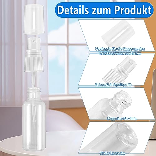 Nebulizzazione fine: il piccolo flacone spray da riempire è ampio, la nebbia d'acqua è ultra fine, solo una leggera pressione spruzzerà il liquido in modo uniforme e delicato. Può essere riutilizzato dopo la pulizia. Basta rimuovere la pompa, lavare e asciugare la bottiglia e riempirla in pochi secondi.