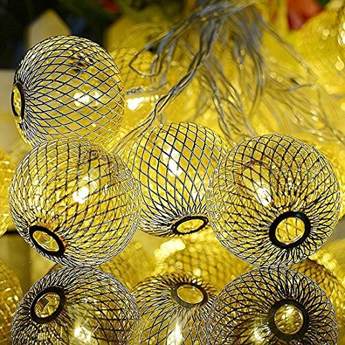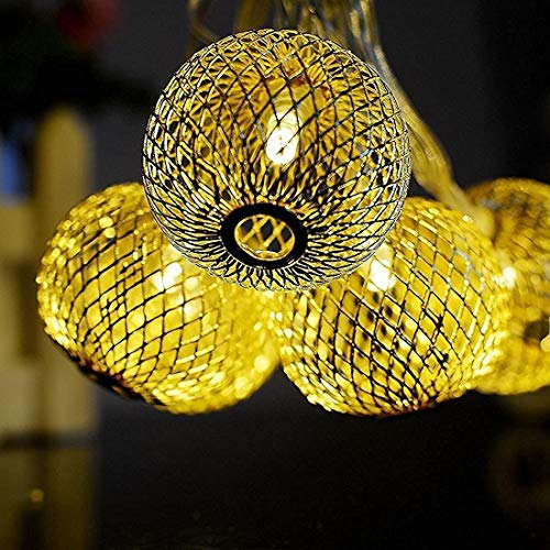 EONANT Catena di luci a energia solare per esterni, in metallo, 20 LED, luce bianca calda, decorazione per la camera da letto, il giardino di nozze (lanterna)