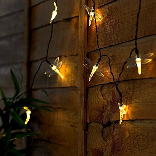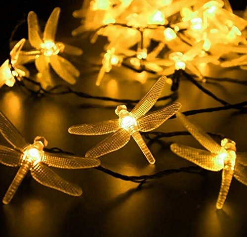 EONHUAYU Luci di Goccia Solari, Stringa di Goccia Solare 20FT/6M 30 LED Libellula Luci Esterne Impermeabili per Matrimoni di Alberi da Giardino (Warm White)
