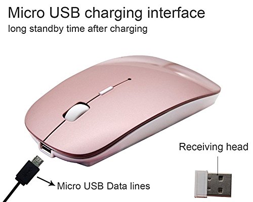 EONHUAYU Wireless Mouse, 2.4G USB Ricaricabile Senza Fili Ottico Sottile con Ricevente Nano per Notebook, PC, Computer Portatile, Computer, MacBook (Rose Gold)