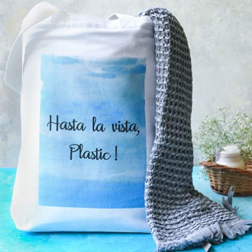 Eono canvas tote bag, premium cotton borsa a tracolla con chiusura lampo, borse eco friendly shopper per le donne, uomini, ragazze per lavoro, a scuola, shopping, riutilizzabile | hasta la vista