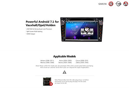 Eonon Android 7.1 autoradio CD Stereo, navigatore satellitare GPS per Opel Antara, Corsa, Astra, Vectra, Zafira, unità console con lettore DVD touch screen, supporto Bluetooth, radio DAB+, WiFi, 2 GB RAM, nero GA8156