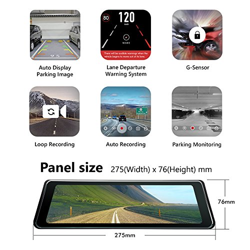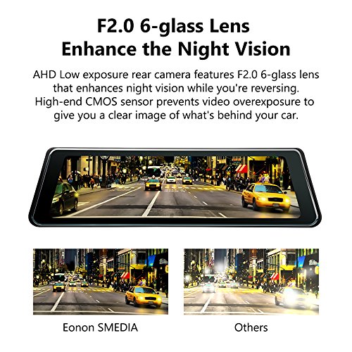 Display full touch media streaming: eonon r0011 specchio Dash Cam con un cristallo 25,1 cm Full View Touch Screen assicura immagini senza alcun ritardo. Display molto immagini nitide e liscia come come un ruscello l' ottimo WDR e regolazione automatica luminosità media streaming a specchio. Mai un' incredibile esperienza utente