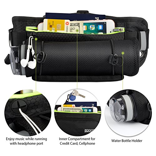 EooCoo Marsupio Running Impermeabile, Borraccia Marsupio con Portabottiglia per Escursionismo, Corsa, Campeggio, Arrampicata e Ciclismo, con Strisce Riflettenti e Foro per Cuffie
