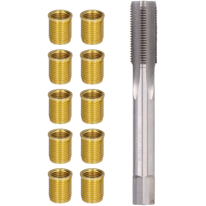 Lineamenti: 1. STRUMENTI PER LA RIPARAZIONE DEL FILETTO: strumenti professionali per la riparazione del filo della candela, inclusi 10 inserti filettati M12 x 1,25 e un maschio per filettatura M14 x 1,25. 2. DIMENSIONI STANDARD: questi strumenti di riparazione hanno dimensioni di filettatura standard, adatte per riparare candele con filettatura da 14 mm x 1,25 mm. 3. INSERTI IN ACCIAIO INOSSIDABILE: questi inserti filettati sono realizzati in acciaio inossidabile, con trattamento galvanico, resistente alla corrosione e durevole. 4. RUBINETTO IN ACCIAIO AD ALTA VELOCITÀ: il rubinetto filettato è realizzato in acciaio ad alta velocità, che presenta un'elevata durezza e un'elevata resistenza al calore. 5. MACCHINE APPLICABILI: efficienti e risparmio di manodopera, particolarmente adatte per motori a benzina, generatori, motori diesel e altre macchine. Specificazione: Tipo di articolo: strumenti di riparazione della filettatura della candela Dimensioni dell'inserto filettato: M12 x 1,25