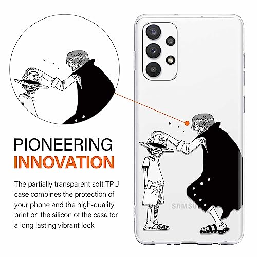 Eouine 2 Confezione Custodia per Samsung Galaxy A32 5G 6.5" Anime Zoro Trasparente Case Morbida TPU Antiurto Silicone Anime Luffy Cover 3D Disegno per Samsung A32 5G