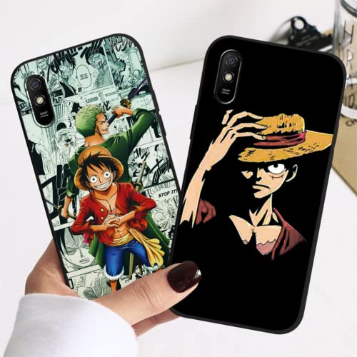 Eouine 2 Confezione Custodia per Xiaomi Redmi 9A (4G)/9I/9AT 6.53",Anime Luffy Zoro Protezione Case Morbida TPU Antiurto Silicone Manga Luffy Straw Hat Cover Modello per Xiaomi Redmi 9A 4G