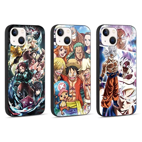 Eouine 3 Confezioni Custodia per Apple iPhone 13 6.1" Anime Cartone Moda Design e Luffy Zoro Protezione Case e Demon Slayer Tanjirou Nezuko Manga Disegno Ultra Slim TPU Antiurto per iPhone13, 2