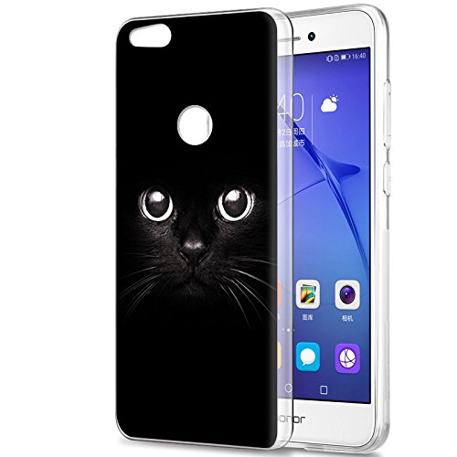Eouine Cover Huawei P8 Lite 2017, Ultra Slim Cover Trasparente con Disegni, Morbido Antiurto Gel Bumper Case Custodia in TPU Silicone per Huawei P8 Lite 2017 (Gatto Nero)