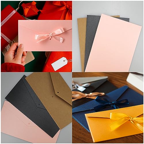 FACILE DA USARE: Queste buste colorate a nastro sono super facili da usare. La sua forma è molto semplice, puoi inserire direttamente biglietti, inviti e altri oggetti nella busta, decorarla con un nastro e poi inviarla come regalo, invito, ecc. È molto comodo e facile da usare.