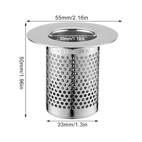 Diametro esterno filtro per lavello da cucina: 5,5 cm, diametro interno: 3,3 cm, altezza: 5 cm. si prega di confermare la dimensione del filtro prima di ordinare. durante l'installazione può essere inserito direttamente nello scarico a pavimento della stessa dimensione senza attrezzi.