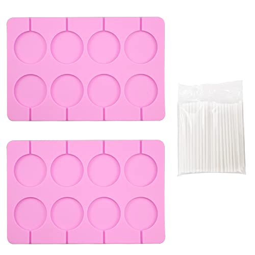Eozighi 2 Pezzi Silicone Lollipop Mold Stampo Silicone Cioccolatini Vassoi Stampi Rotondi in Silicone Lollipop Stampo con 100 Bastoncini per Fare Lecca-lecca Gelatina Cioccolato Caramelle (Rosa)