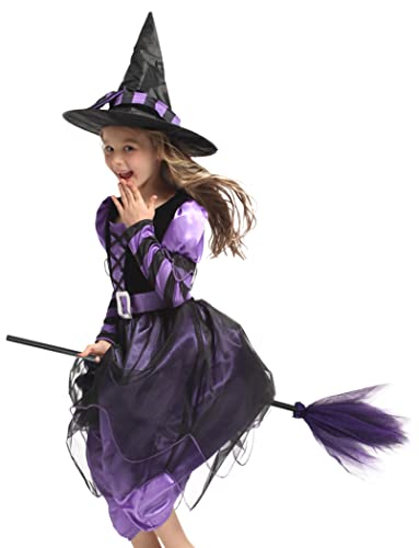 EOZY-Costume da Strega Bambina Costume Cosplay di Halloween Viola Carnevale Costume Abito Travestimento con cappello per Bambini Ragazzi 4-12 anni (La Scopa Da Strega, Altezza 110-120CM)