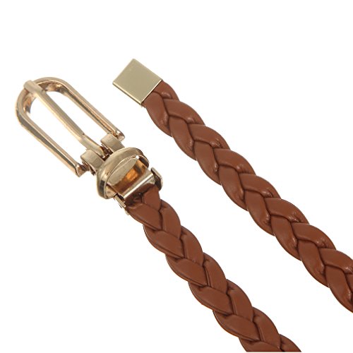 EOZY-Vintage Cintura da Donna Waistband Sottile Intrecciata Decorativa Eco Pelle Belt Marrone