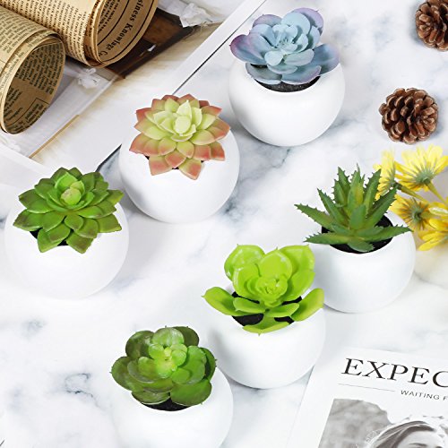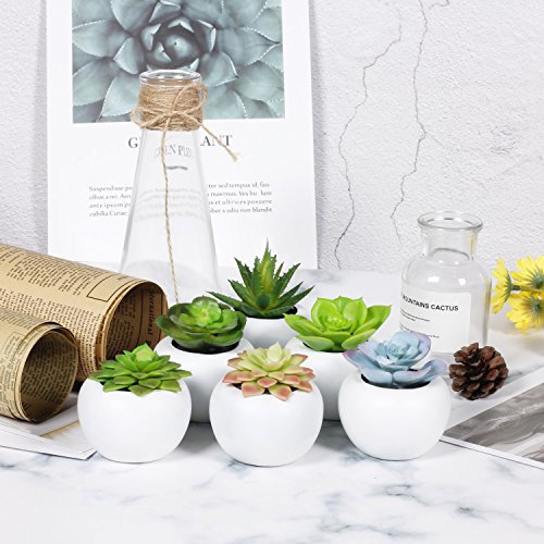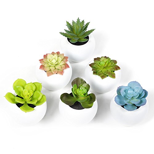 EPCTEK - Piante succulente artificiali, confezione da 6 contenute in 6 vasi rotondi bianchi, per decorare la casa o da regalare a Natale, piante di colore verde