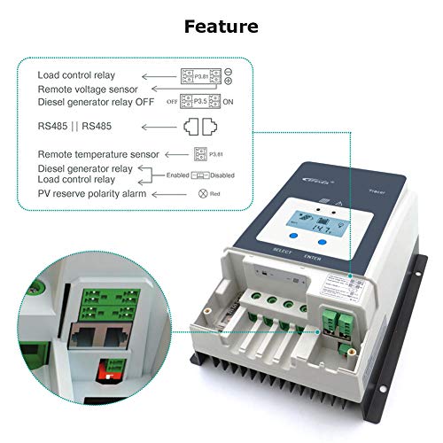EPEVER 50A MPPT Regolatore di Carica Solare 12V/24V/36V/48V con Display LCD, Tensione a Circuito Aperto Fino a 150V per Sigillato, GEL, Allagato e Utente - Tracer 5415AN